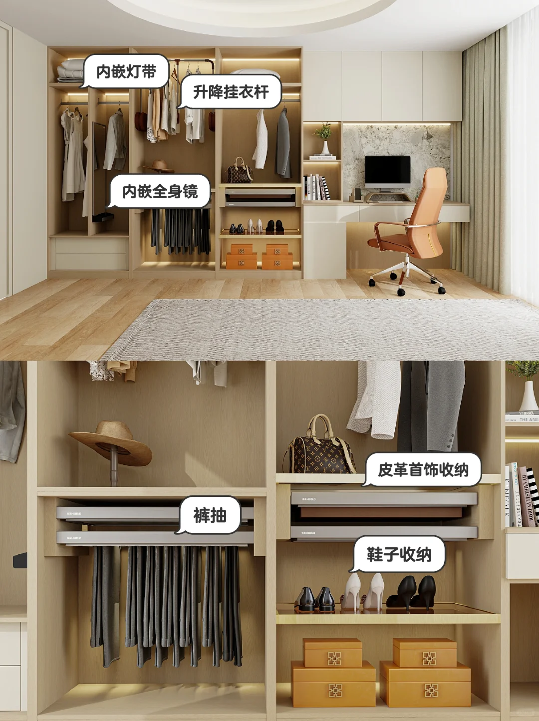 ??到頂衣柜,書桌無桌腳,都是極致利用空間的細節設計。