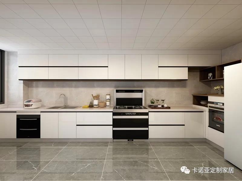L型廚柜動線合理,空間極致利用。定制大量的吊柜和地柜,完全收納烹調所需的瓶瓶罐罐和鍋碗瓢勺,