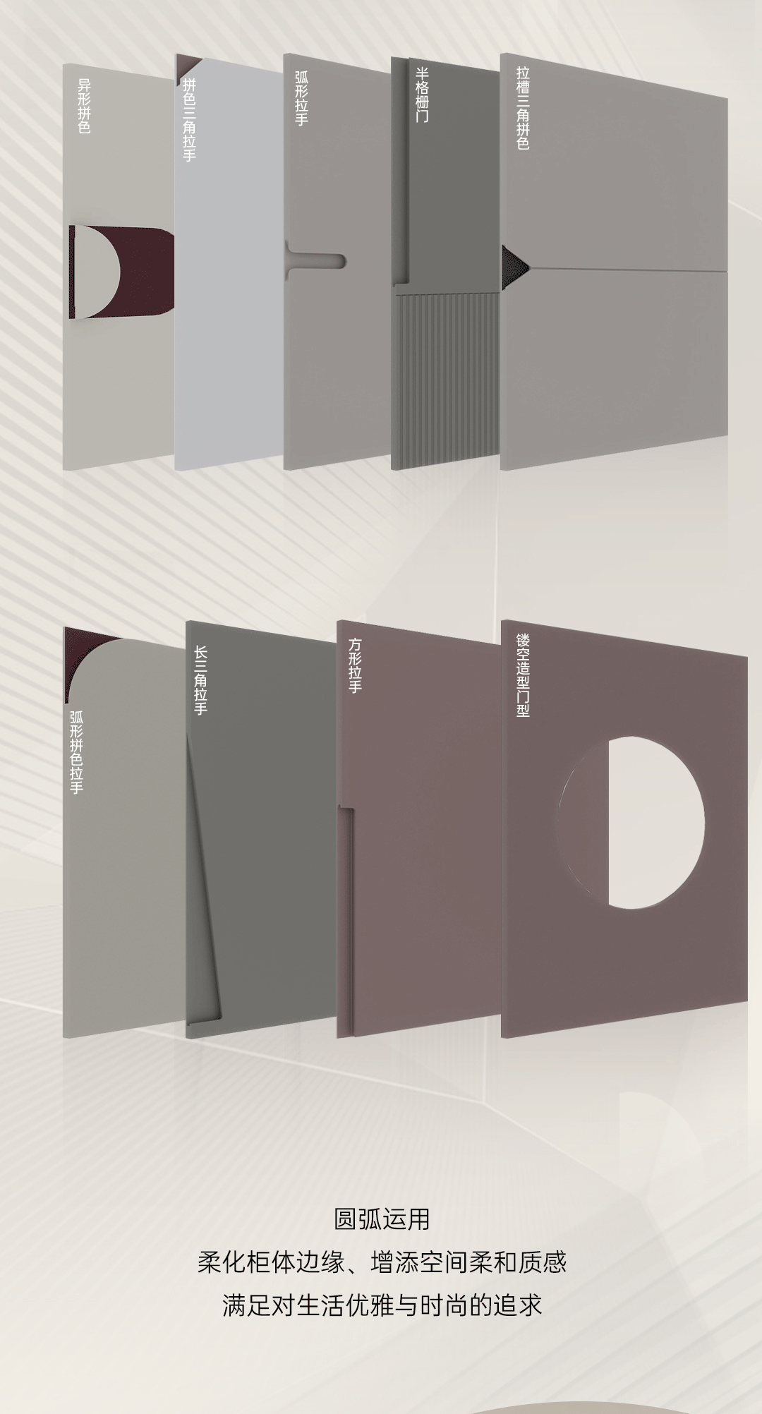 造型:幾何拼接造型與柔和弧線的結合,在設計中創造出一種現代溫馨的氛圍。