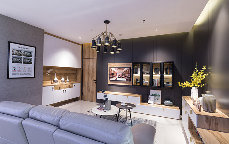 大面積運用橄欖木+高原雪橡/印象白的撞色搭配,給人明朗、活潑、自然之感。橄欖木護墻系統,隔音防潮,營造舒適睡眠空間。嵌入式衣柜及推拉門設計,不占用空間,將簡潔風格發揮到極致。150°弧形板展示架,帶給空間更多美妙的曲線。床頭背景墻以橄欖木+黑鏡飾面相間組合,平整又自然地拉闊了空間層次感。