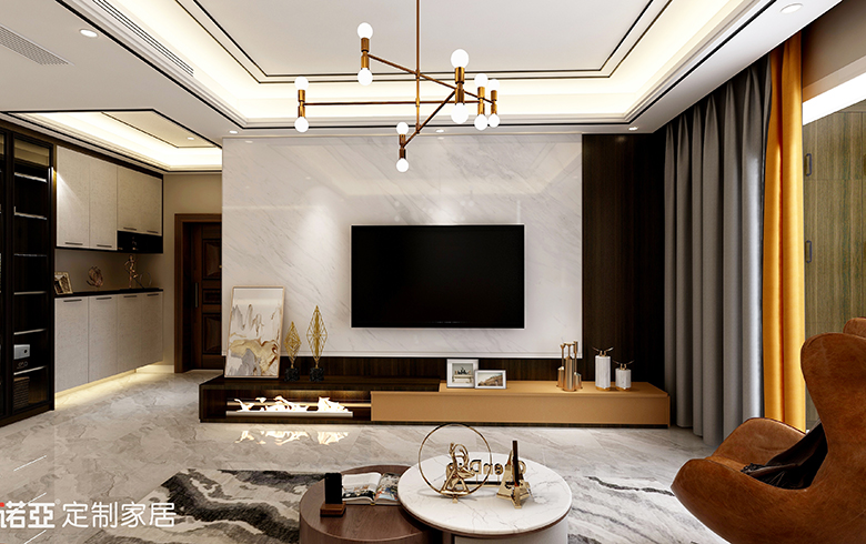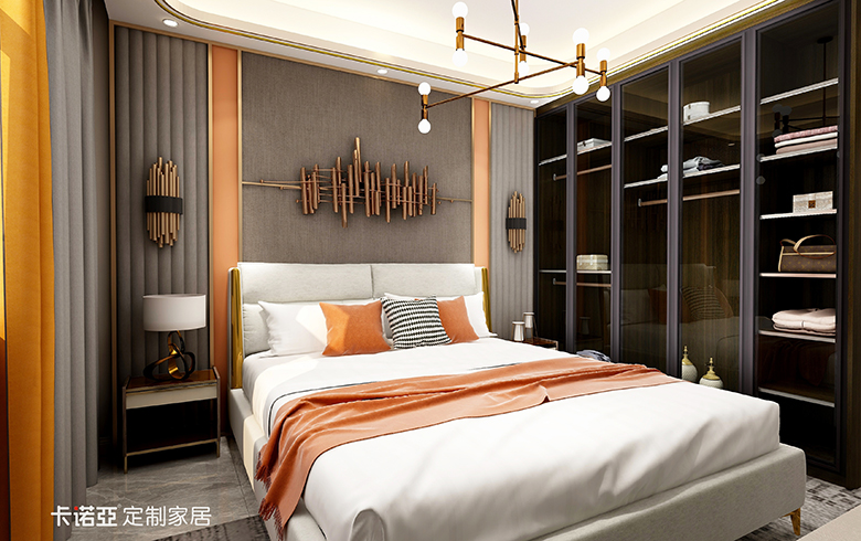 高級黑與高級灰做為表現,黑白的對比鮮明,總給空間一種大大方方的利落感覺。選用帶有高級感愛馬仕橙,黑色及碳灰色,來演繹一種“低調的奢華”,令空間質感更為飽滿。