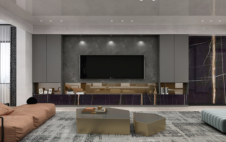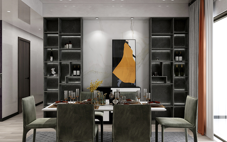 本案為碧桂園·天薈265平大平層的現代極簡風格案例。現代派的極簡主義在滿足功能的基礎上,不斷的做減法, 反對形式化和裝飾化,拋棄不必要的細節而強調物體本身的美,主張功能化和理性化的設計理念,加上對材料和色彩的考究、運用,在設計師的偏執喜好里,掀起對“黑的溺愛”的藝術思潮。