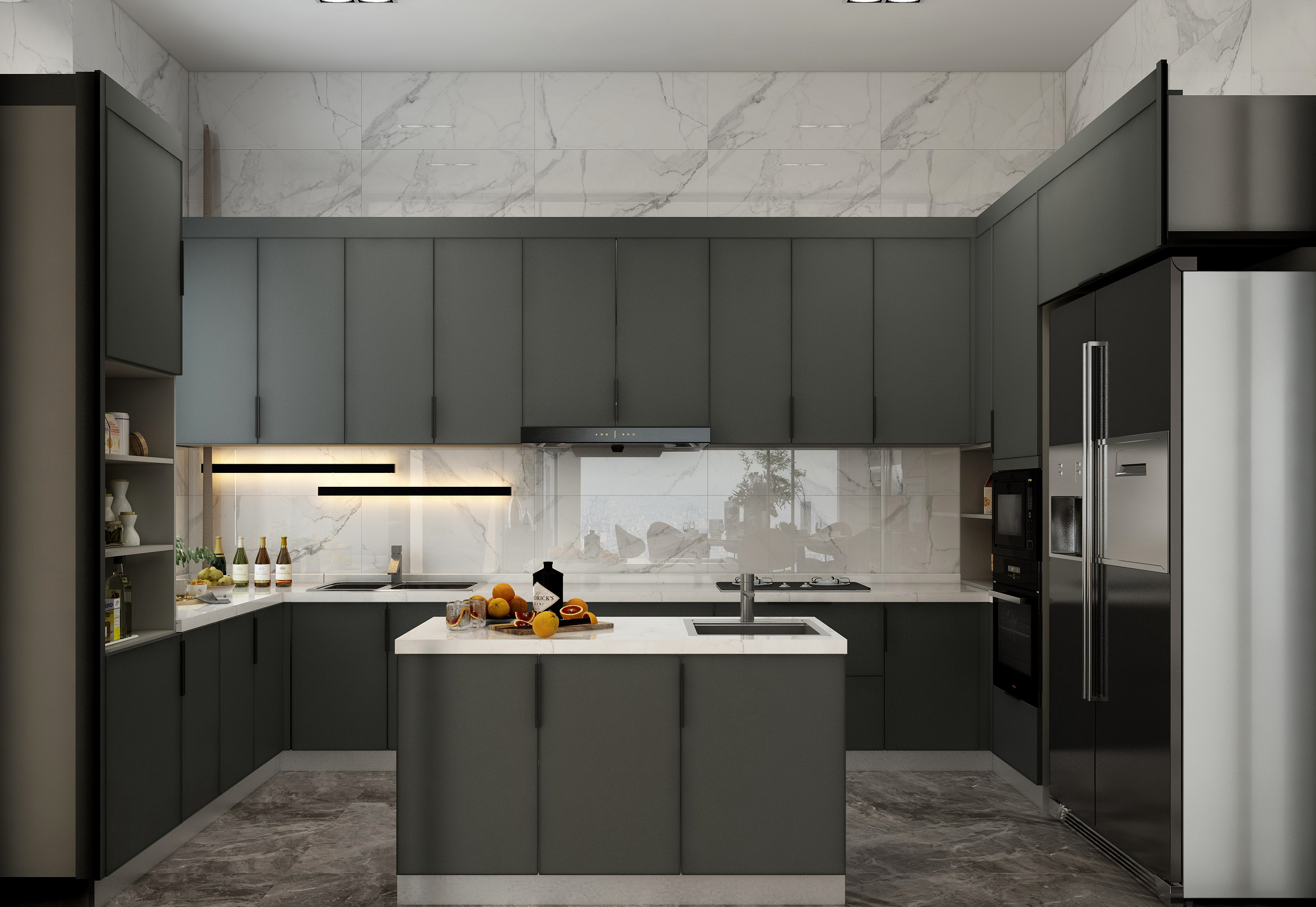 在接近夜幕時刻的傍晚,天空還帶著微微的晚霞,天空是霧蒙蒙的,泛著暖暖的光,暮色刻畫出來的棱角,不像深夜那么模糊,不像白天那么清晰,有一份恰好的柔和感又有一份溫柔的醉意。而我門這次方案的構(gòu)思,將設(shè)計方案定義為極簡風(fēng)格,保留著黑白灰本有的色塊分明度,在色彩元素上增加了一些暖色調(diào),在材質(zhì)提現(xiàn)上摻入一些絲絨磨砂柔軟觸感的質(zhì)感搭配,緩和黑白灰的線條感,讓冷峻的空間感多一點生活的煙火氣息