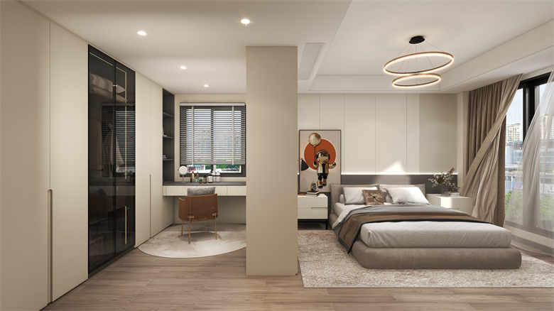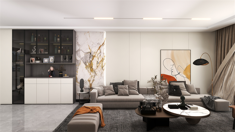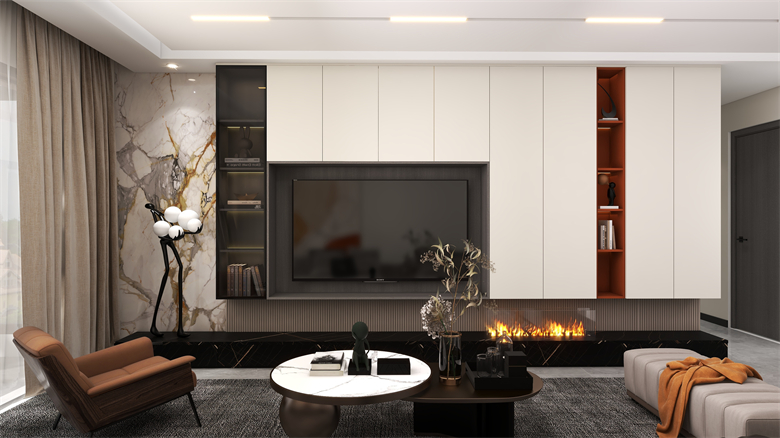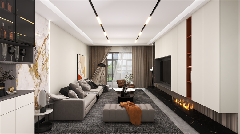 本案以現代簡約風格出發,整個空間以純白色的空間感搭配上舒適自然的家居布置,橙色的細節點綴讓空間顯得更加高級大氣,營造出一種輕松自然的家居氛圍感。設計師理念:創意來源于生活,用有限的空間,做無限的設計整家之美|第五屆卡諾亞杯全國家居空間設計大賽