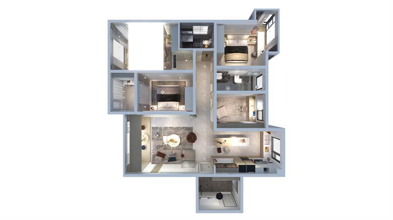 本作品是為解決一家人的生活需求所創(chuàng)作。作者希望在紛擾的世界有每個人都有屬于自己的一方天地,讓家的意義更明顯。讓房間產(chǎn)生溫度的不僅是收納,功能,顏值,還有對生活和家的熱愛。設(shè)計理念:顏值即是正義,以形式表現(xiàn)空間,形式追隨功能,超越功能。整家之美|第五屆卡諾亞杯全國家居空間設(shè)計大賽
