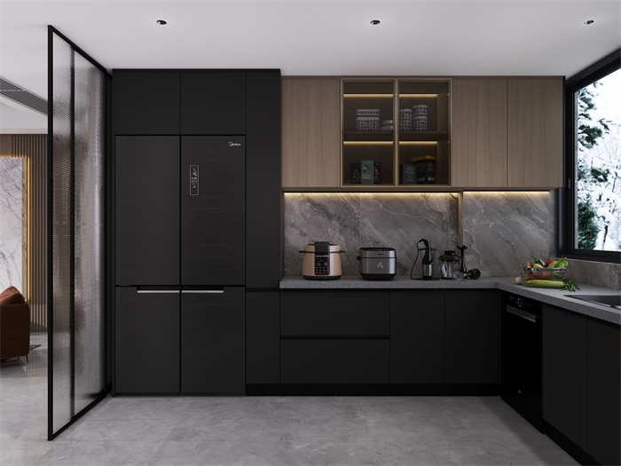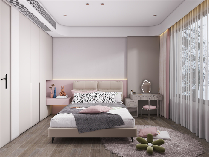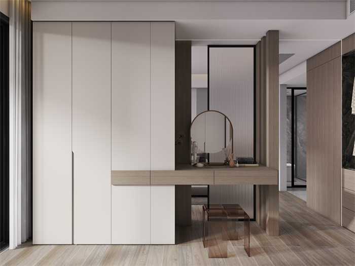 家具選擇上,以簡(jiǎn)約現(xiàn)代風(fēng)格的家具為主,注重舒適度和功能性。軟裝細(xì)節(jié)上,采用柔和的色彩和材質(zhì)。廚房注重實(shí)用性和便利性,采用嵌入式收納設(shè)計(jì),最大化利用空間,營(yíng)造一個(gè)干凈整潔的烹飪區(qū)域。臥室以舒適為設(shè)計(jì)重點(diǎn),采用柔和的色調(diào)和舒適的床品,營(yíng)造令人放松的休息空間。充分利用儲(chǔ)物空間保持整潔有序。