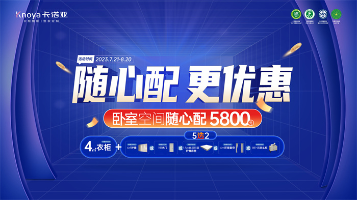 流火七月,為回饋新老客戶的鼎力支持,卡諾亞整家定制將于7月21日-8月20日,火熱展開以“隨心配,更優惠”為主題的福利活動。除了一年一次的煥新服務貼心送到家之外,卡諾亞此次特地推出臥室空間隨心配5800元精品套餐,含4㎡衣柜+(4m護墻、1樘定制木門、1.5m護脊床墊、6米A級母嬰環保窗簾、1對床頭柜)(5選2),自由選擇自由搭配,還推出經典的康醛整家套餐28800元、舊廚煥新套餐、EP環保漆整家套餐38800元等,滿足年輕消費者的個性家裝需求。