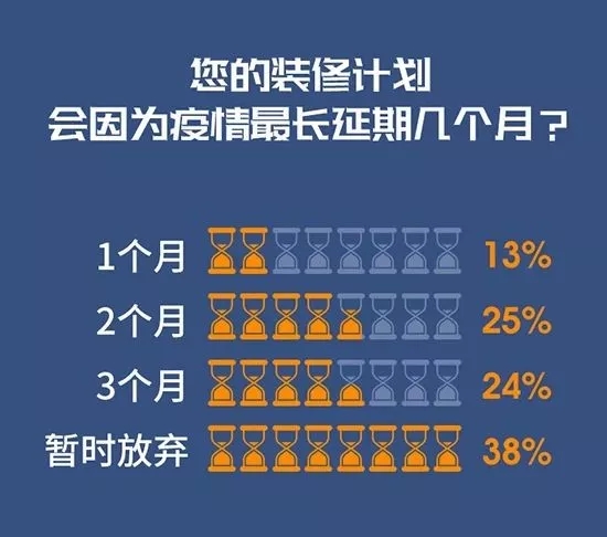 雖然目前疫情仍然比較嚴(yán)重,但是只有38%的家庭表示會放棄原來的裝修計(jì)劃。也就是說,6成以上家庭不會因?yàn)橐咔槎艞壯b修。