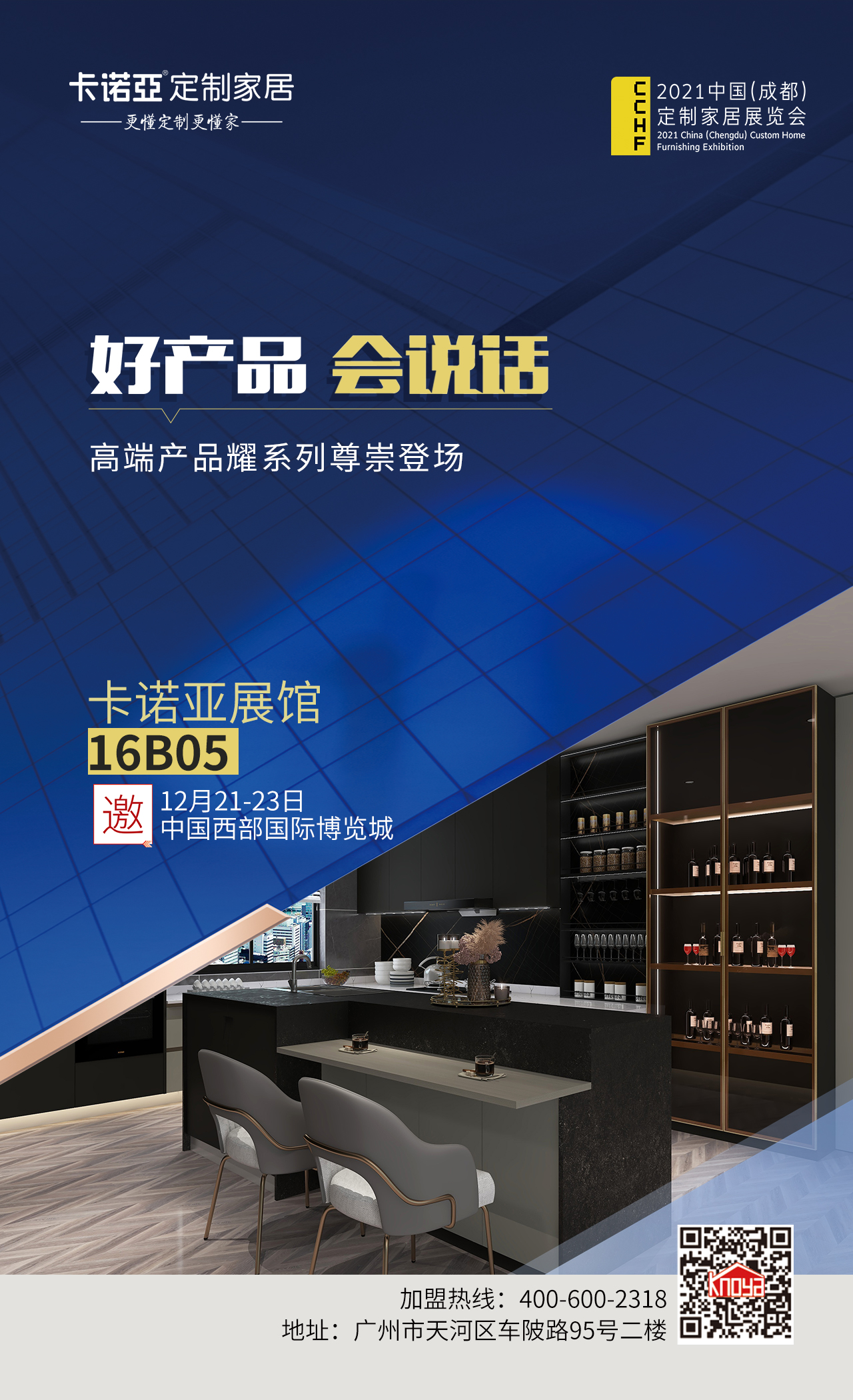 12月21-23日,2021中國(成都)定制家居展覽會舉行,位于中國西部國際博覽城16B05展位的卡諾亞定制家居,將攜年度新品現代簡約風格高端產品耀系列首度亮相展會。新品以行業獨創“空間定制”模式進行展示,并使用環保水性漆、時尚LCT亮光板等新材料以及新花色,加上重磅招商政策,將為加盟商帶來一場定制財富盛宴。
