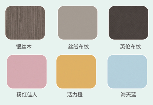 套餐中柜、墻、門一站配齊,不僅省心省事,還能實現整家風格統一,顏值爆棚。加上套餐新升級人氣花色銀絲木、活力橙、海天藍、粉紅佳人、絲絨布紋、英倫布紋等,時尚配色任性選,不限風格、不限戶型,輕松打造高顏高品個性之家。