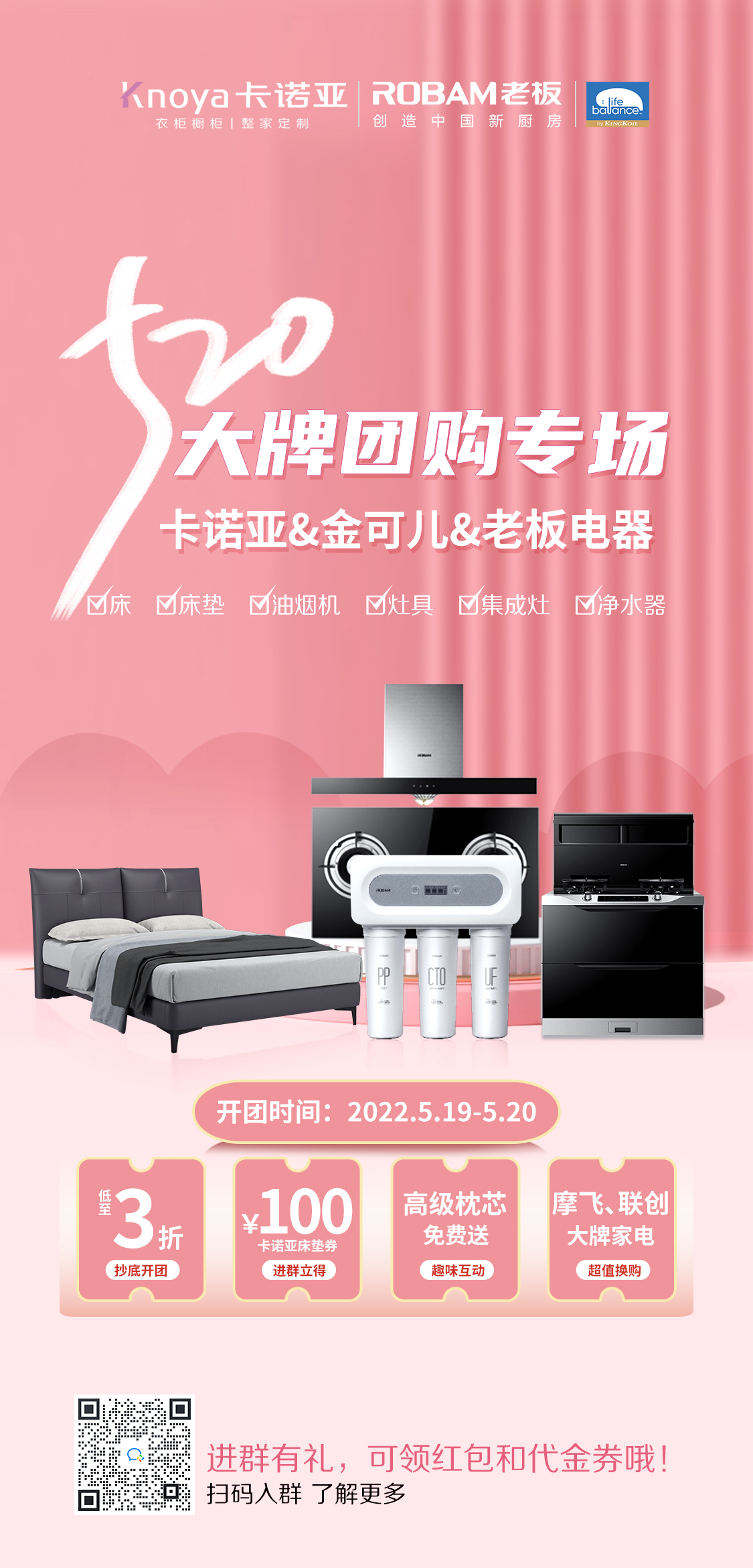 本次活動,還有蕭伯納、博洛、雅致華、云影等多種爆款和新品上市,涵蓋衣柜、櫥柜、護墻、木門、拎包套餐,潮流花色、高端品質、滿分顏值、鉅惠風暴……歡迎關注520大牌團購專場、6月1日明星直播活動,屆時特邀明星體驗官蒞臨,直播現場大放價,紅包、優惠券大放送,更歡迎在6月5日之前親臨卡諾亞當地門店,解鎖更多驚喜福利。