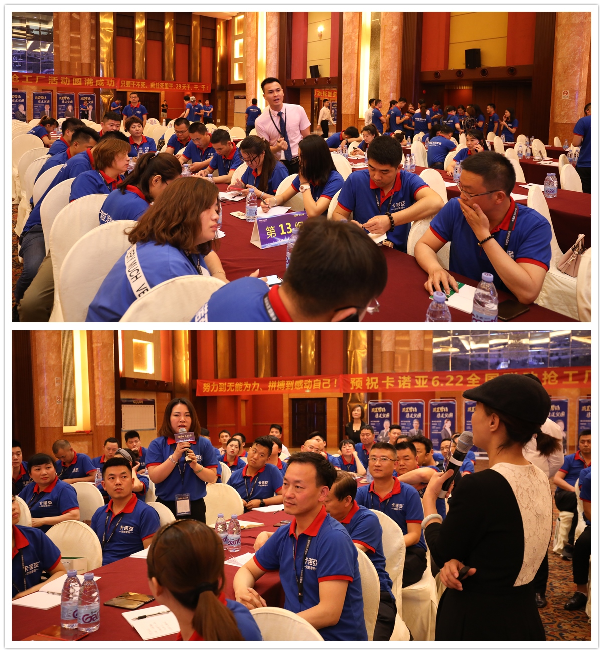從早上開始,參會經銷商陸續到達,卡諾亞組委會工作人員斗志昂揚列隊迎接,讓經銷商感受到回家的溫暖。晚上大家匯聚一堂,進行分享討論。“傳世嘉業”女神劉萍擔任會議主持,一番有趣、好玩的熱身游戲之后,氣氛瞬間被帶動起來,大家情緒高漲、活力全開,卡諾亞卓越經銷商代表上臺發言,生動實戰的案例分析及幽默風趣的語言,贏得了在場經銷商的陣陣掌聲。與會者暢所欲言,臺上臺下激情互動,現場成為一片歡樂的海洋。