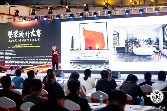 在主題演講環節,來自廣東藝邦裝飾集團創始人余靜贛跟大家分享了他做裝飾40年來的目的是快樂。“整裝設計是我們現階段,也是未來的方向。這個方向不是目的,目的還是“快樂”。