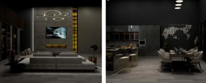 卡諾亞展館還采用大空間穿插設計,從廚房可以看到客廳、餐廳……形成“你中有我,我中有你”布局,各類空間遙相輝映,通透開敞,視野開闊。